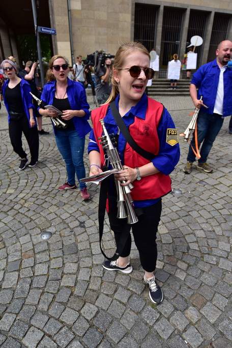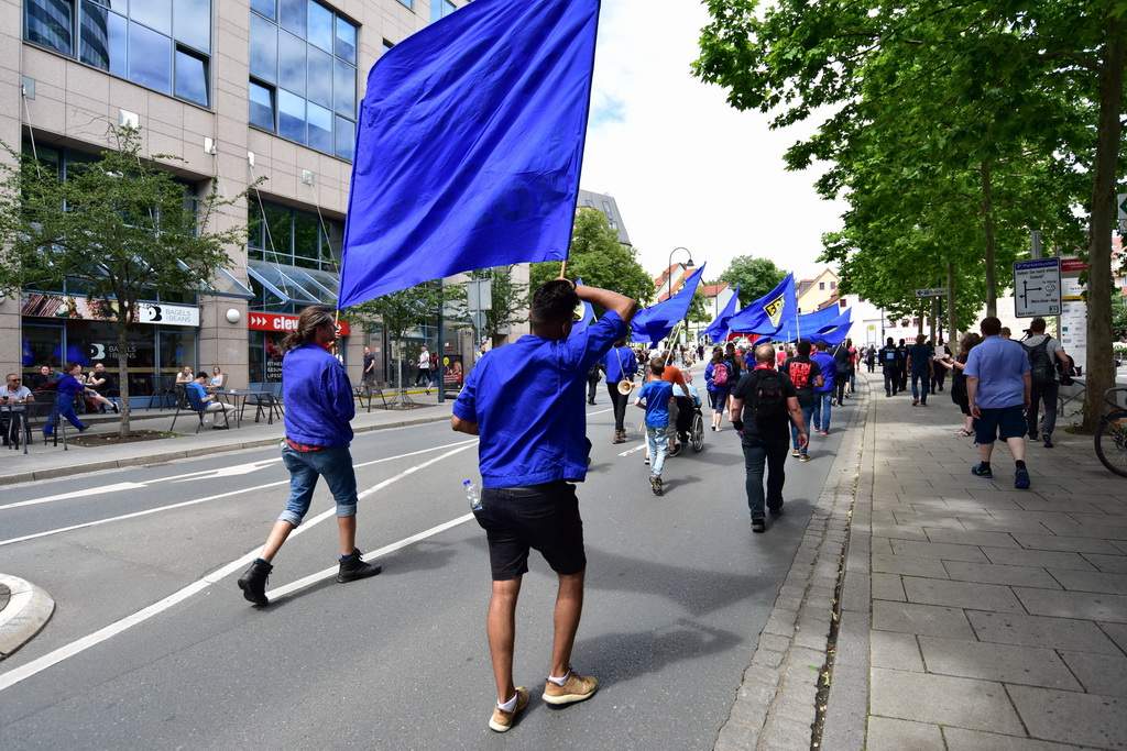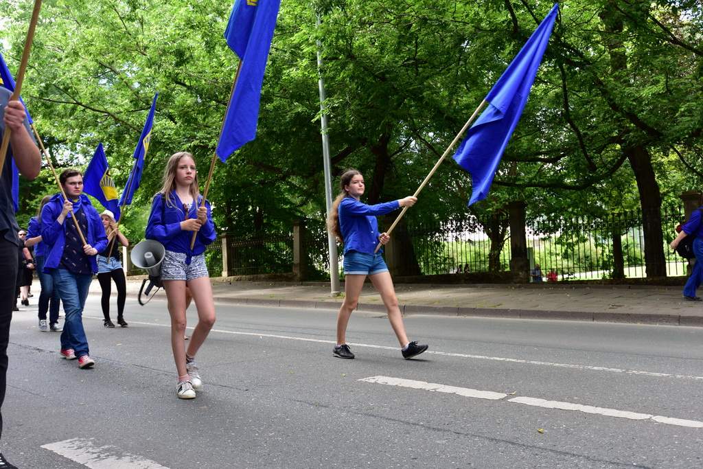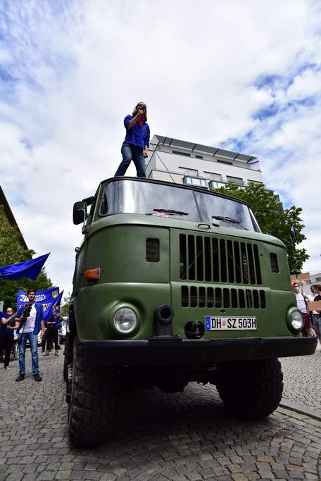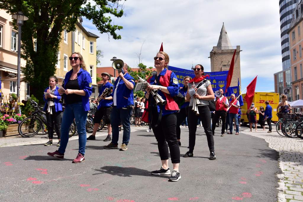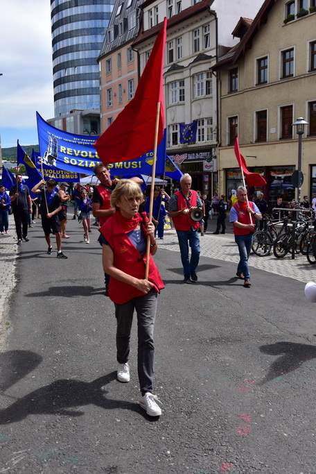 Mit Kampfliedern und roten Fahnen marschierte die “Freie Deutsche Jugend” – FDJ am Samstagnachmittag durch die Jenaer City.