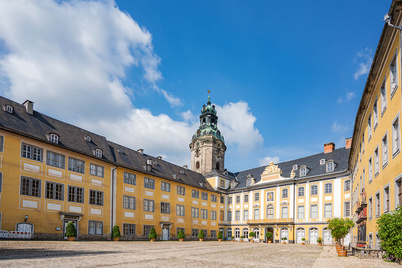 Hoch über den Dächern der charmanten Stadt Rudolstadt erhebt sich ein architektonisches Meisterwerk: Schloss Heidecksburg.