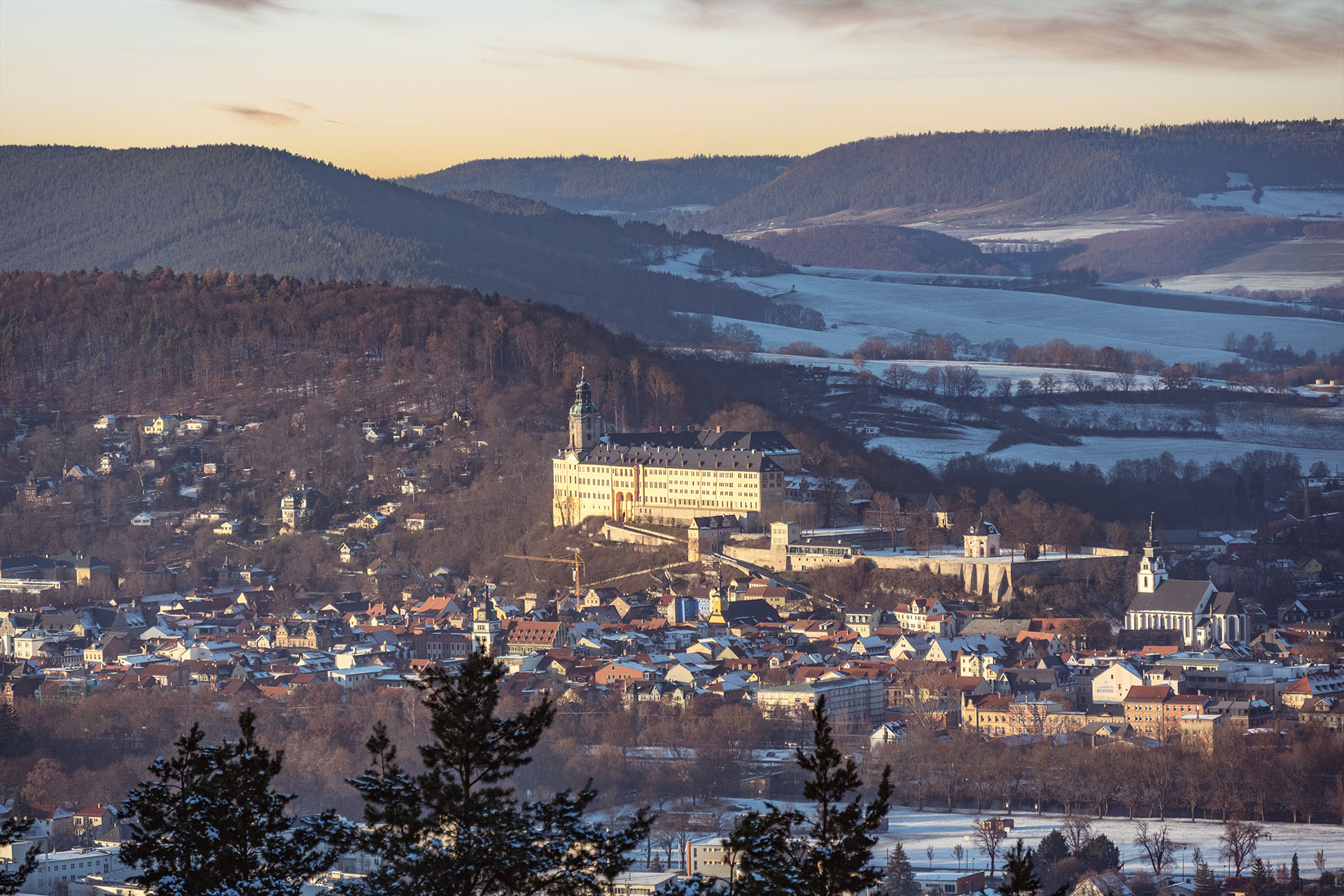 - Panoramablick über Rudolstadt: Vom Schloss hat man einen herrlichen Blick über die Stadt und das Saaletal – perfekt für eine kleine Pause auf der Schlossterrasse.