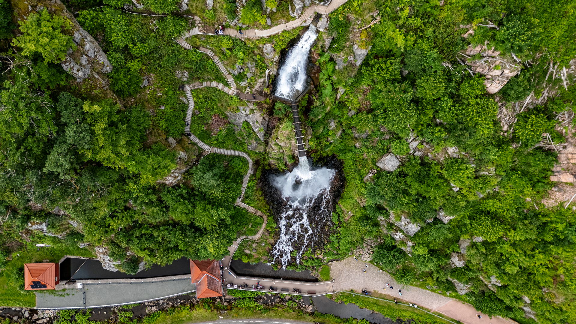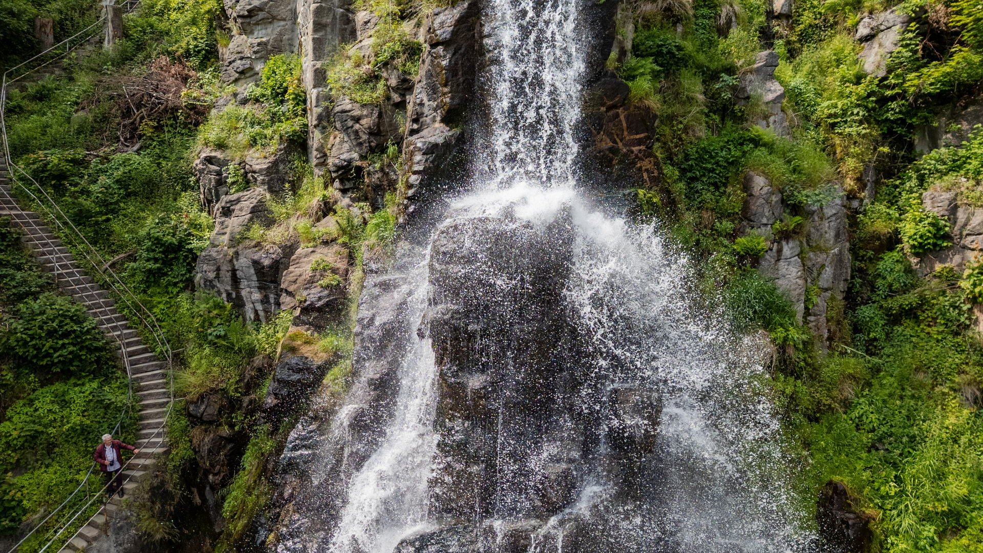 Ein besonderes Highlight ist der Aufstieg über 228 Stufen direkt neben dem Wasserfall. Oben angekommen erwartet Besucher eine atemberaubende Aussicht auf die kraftvollen Wassermassen, die in drei Stufen über den Fels in die Tiefe donnern. Dieses Naturerlebnis ist sowohl für Familien als auch für Wanderfreunde ein absolutes Muss.
